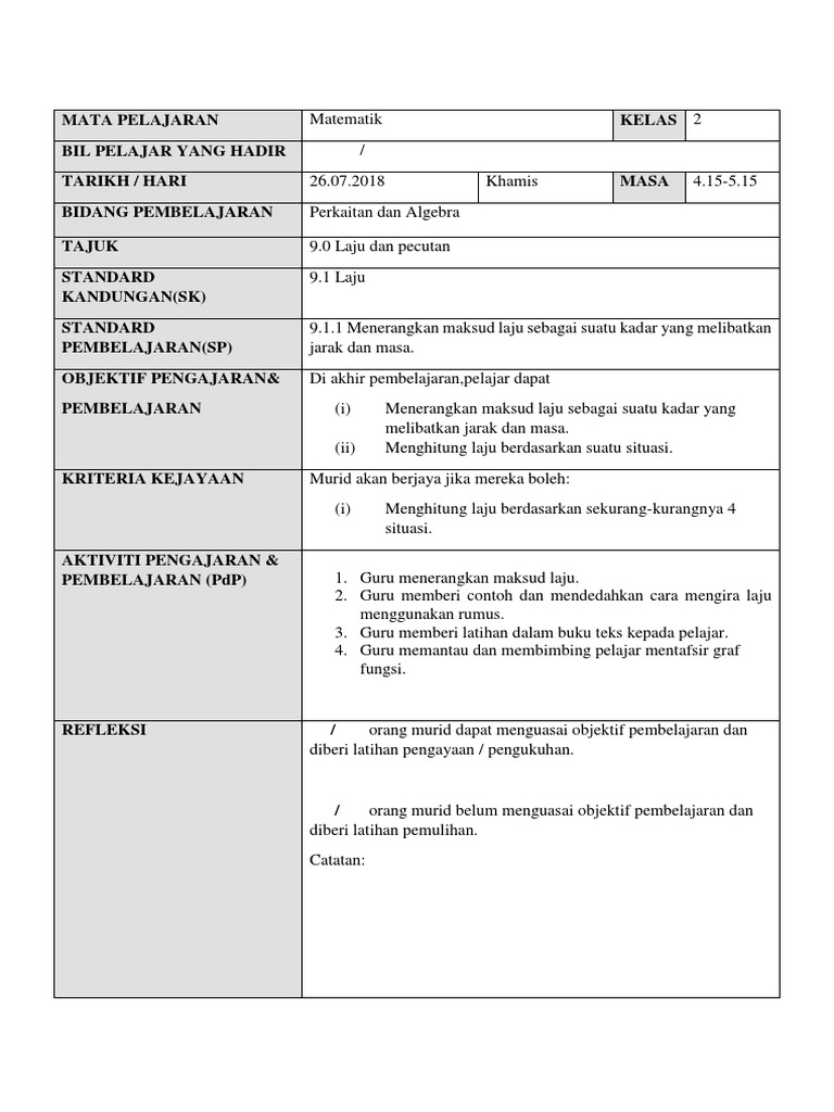Guru dan murid membuat sumbang saran tentang perilaku baik yang terdapat dalam karya. Rph matematik tahun 1 Pang Ling Ling. Dapatkan RANCANGAN PENGAJARAN HARIAN SETAHUN untuk kesemua subjek Sekolah Rendah dan Sekolah Menengah dengan harga yang berpatutan.